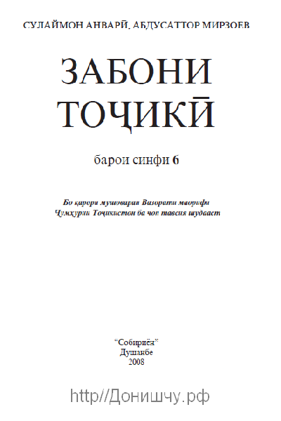 Главная » Файлы » Китобҳо » Китобҳои дарси барои синфи 6